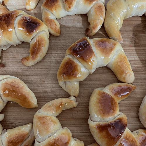 Esta vez me atreví a preparar medialunas con esta receta que encontré en cookpad. ¡Y quedaron tan tan ricas! que se acabaron en cuanto salieron del horno jajajaja.