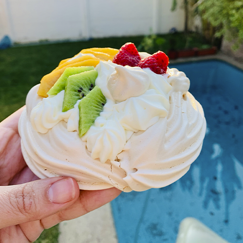 ¡Por fin! Encontré la mejor receta para el merengue y me quedó estupeeendo. El relleno es como siempre crema chantilly y mucha fruta por encima.